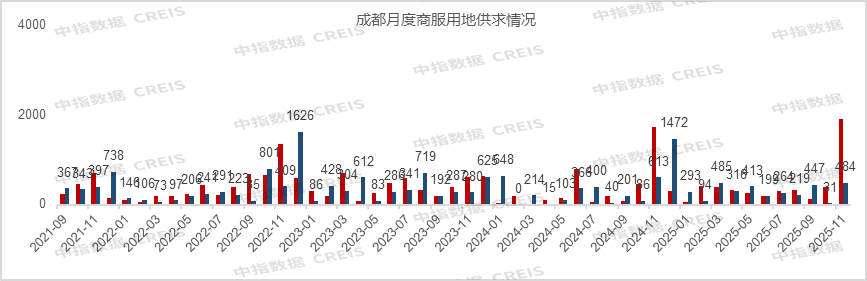 11月,成都涉宅用地供应27宗,共计1207亩;成交22宗,共计1308亩。商办用地供应34宗,共计1906亩;成交16宗,共计484亩。
